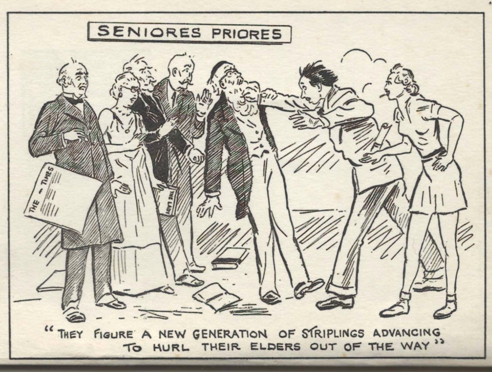 Lately, we have all listened to divers perfervid tributes paid by eminent statesmen to the Youth of the Species. We have heard appeals to Youth to come forward, at what is described as a critical period in our history, and by its superior intelligence, skill and wisdom save the British Empire, which (we are given to understand) is now endangered by the prejudices, ineptitude and debility of the Old Men.