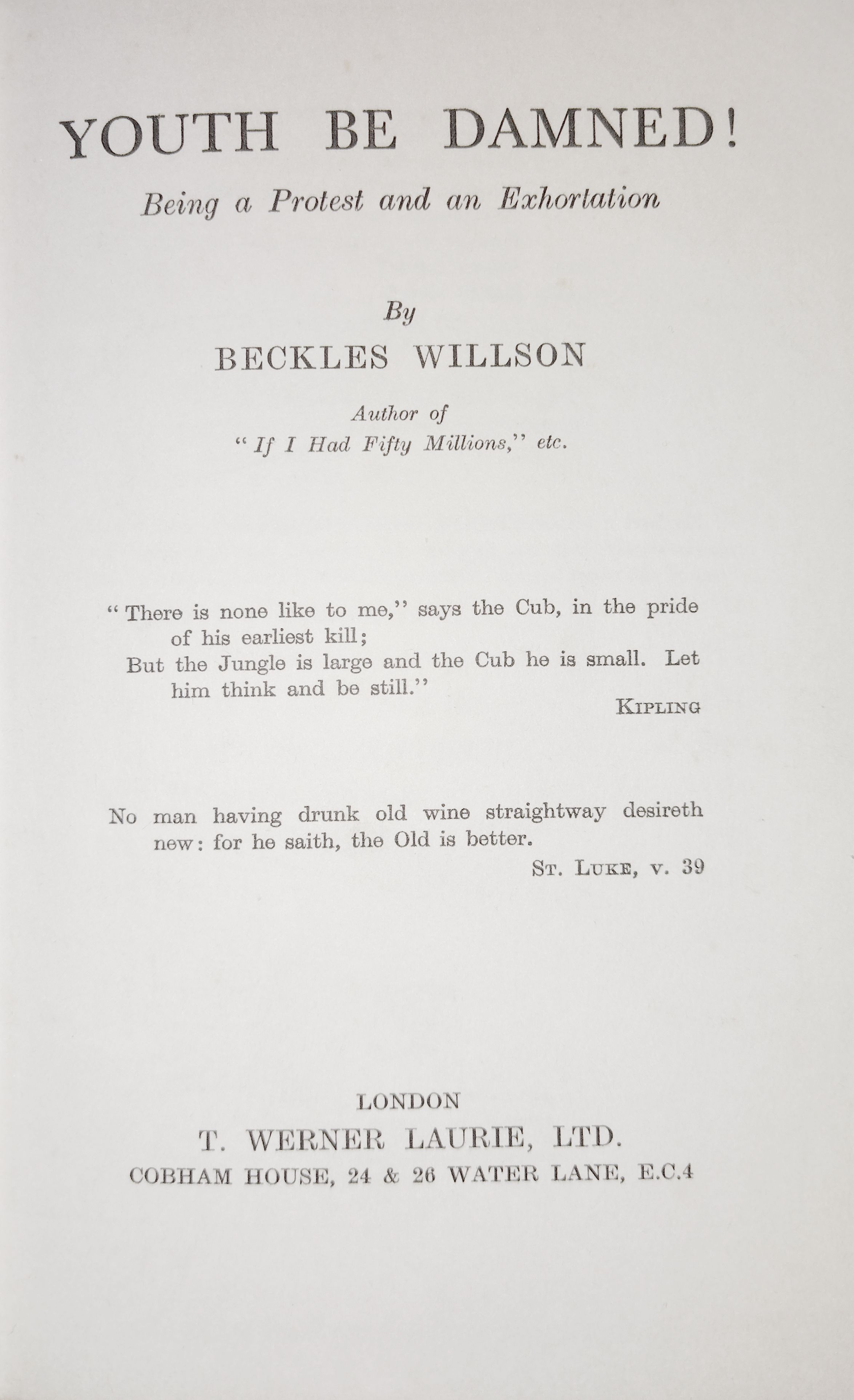 Beckles Willson, a Canadian writer and journalist who made his home in Britain, was 68 when he wrote Youth Be Damned!, an attack on the young of his day, prompted in large part by silly newspaper articles which acclaimed young people en bloc as The Great Hope for The Future.